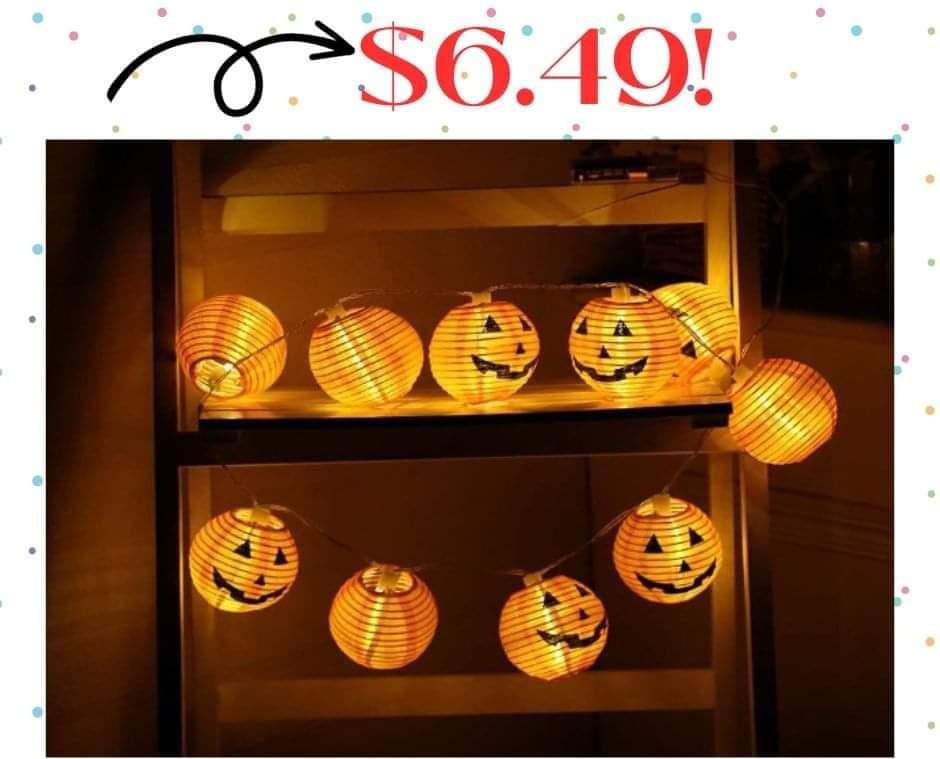 How cute are these Halloween Pumpkin String Lights?! They are battery operated. and fantastic for indoor/outdoor use. Halloween centerpiece, mantle or the classroom. JUST 6.49!