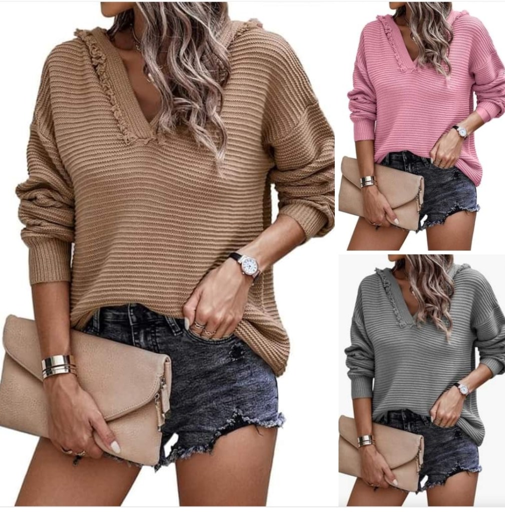 Perfect fall sweaters in lots of color options! Dokotoo Sweaters for Women V Neck Long Sleeve Hooded Sweater Ribbed Knit Pullover Tops!!! Are on de@l #ad