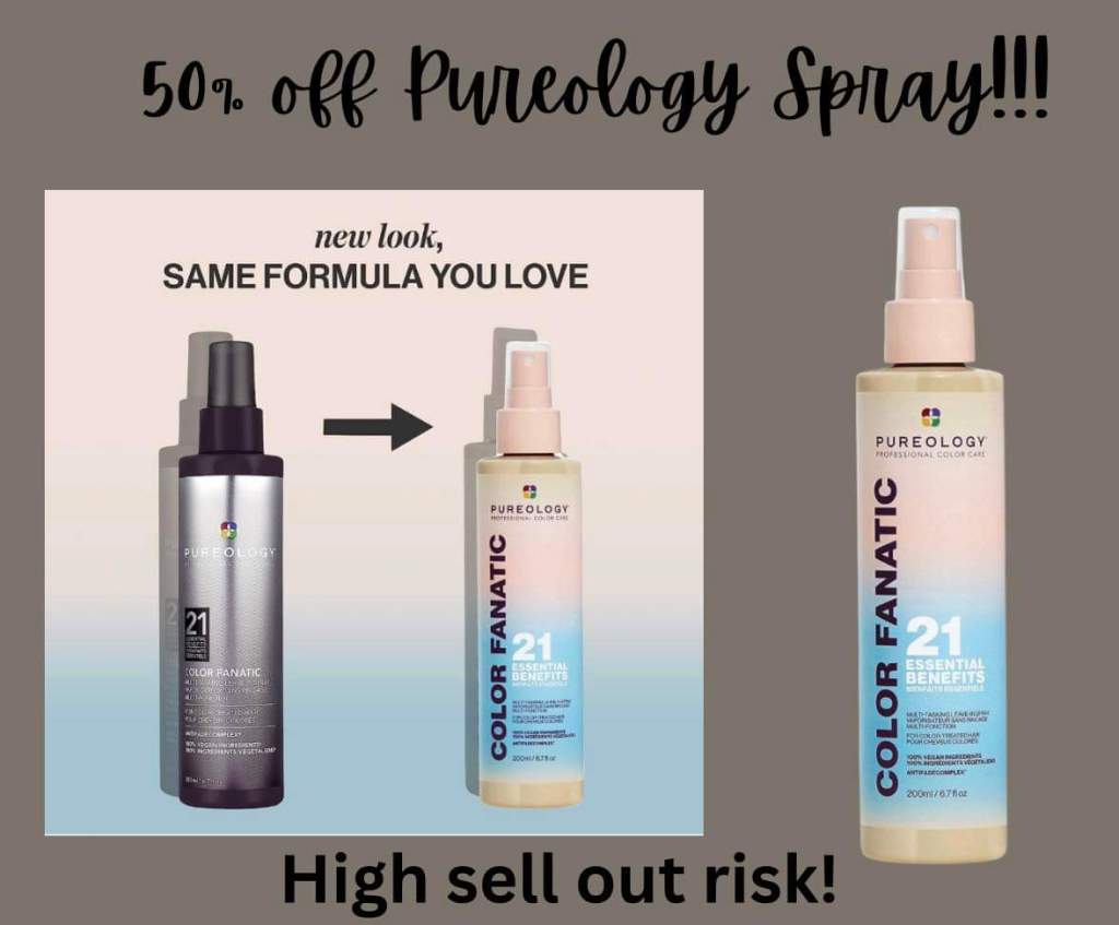Go!!! Half off Pureology spray today only and likely to sell out! This stuff is amazing- heat protectant and 20 other benefits! Same bottle just changed its look ⬇️