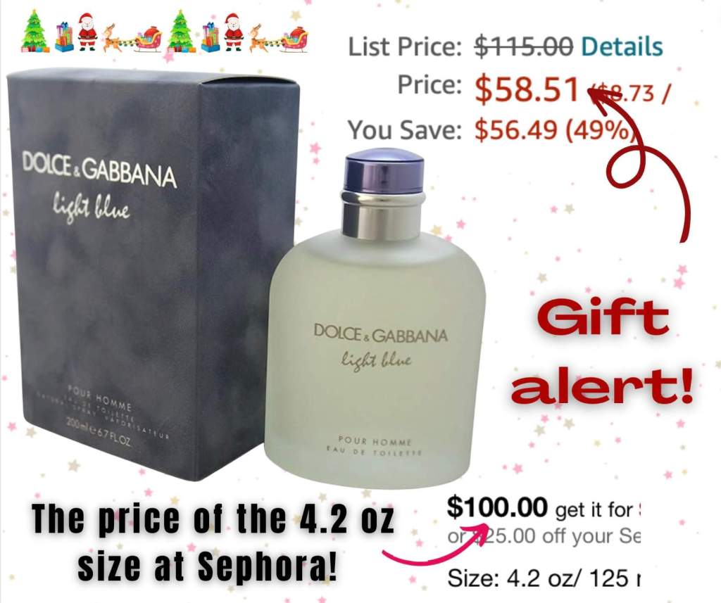 If your guy loves Dolce & Gabbana Light Blue Eau de Toilette Spray for Men, STOP! The 6.7 ounce size is just 58.51 today. The 4.2 ounce size at Sephora is 100! π± Sold and shipped by Amazon so your item is 100% guaranteed. An amazing value!
