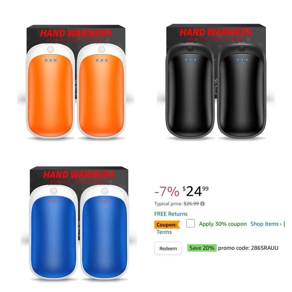 TWO pack of hand warmers still on sale with extra savings when you clip the coupon and the redeem button β this has been the #1 seller this week!