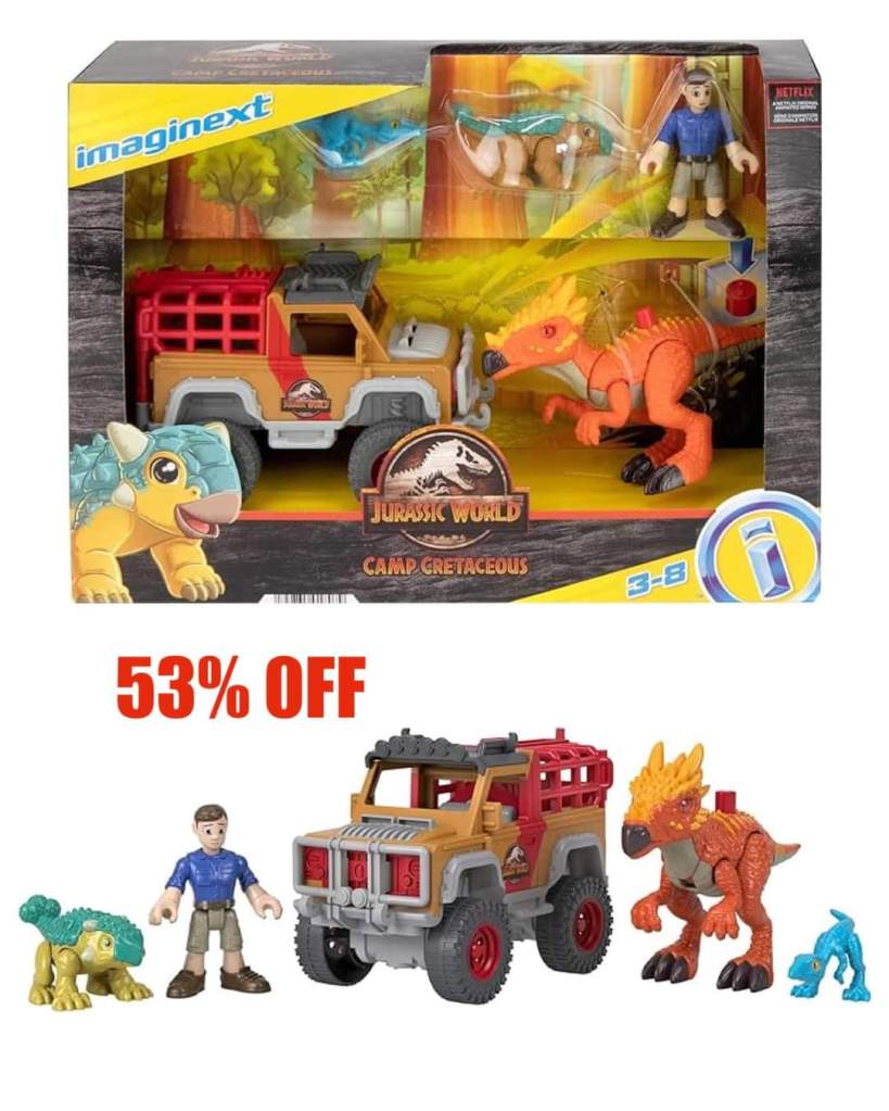 Will end at anytime! Amazing gift!!! Imaginext Jurassic World Camp Cretaceous Runaway Dinos 5-Piece Dinosaur Toy Set with Ben and Bumpy for Kids! #ad