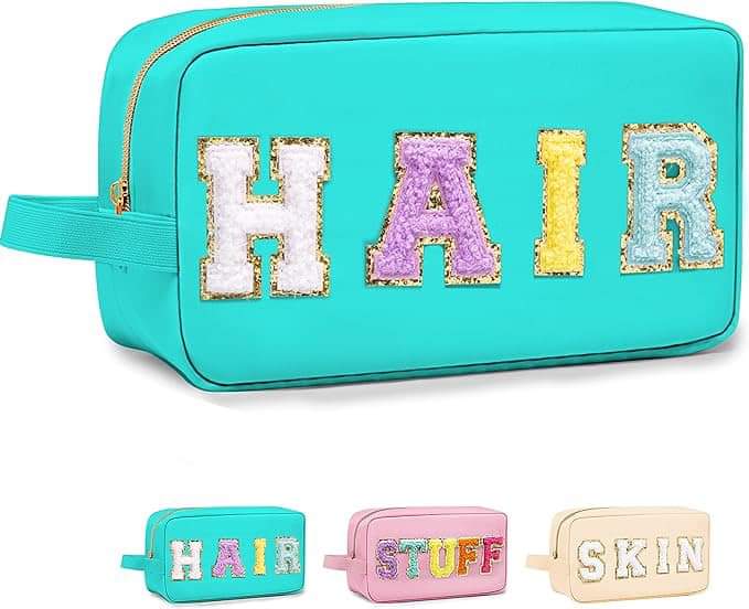 Tons of sayings and colors! Snack options too! Preppy Makeup Bag for Women Girls, Cosmetic Bag Letter Pouch Purse with Handle, Waterproof Portable Glitter Nylon Travel Toiletry Hair Organizer with Zipper!! These make great gifts!