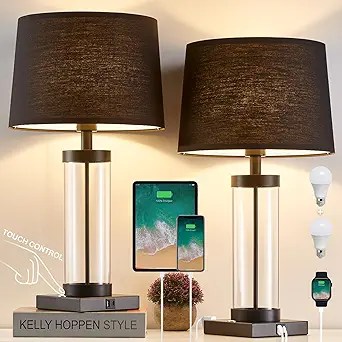 EJIAXIN Glass Table Lamps for Bedrooms with USB C + A Port, AC Outlet 3-Way Dimmable Touch Bedside clip qpon at checkout #ad