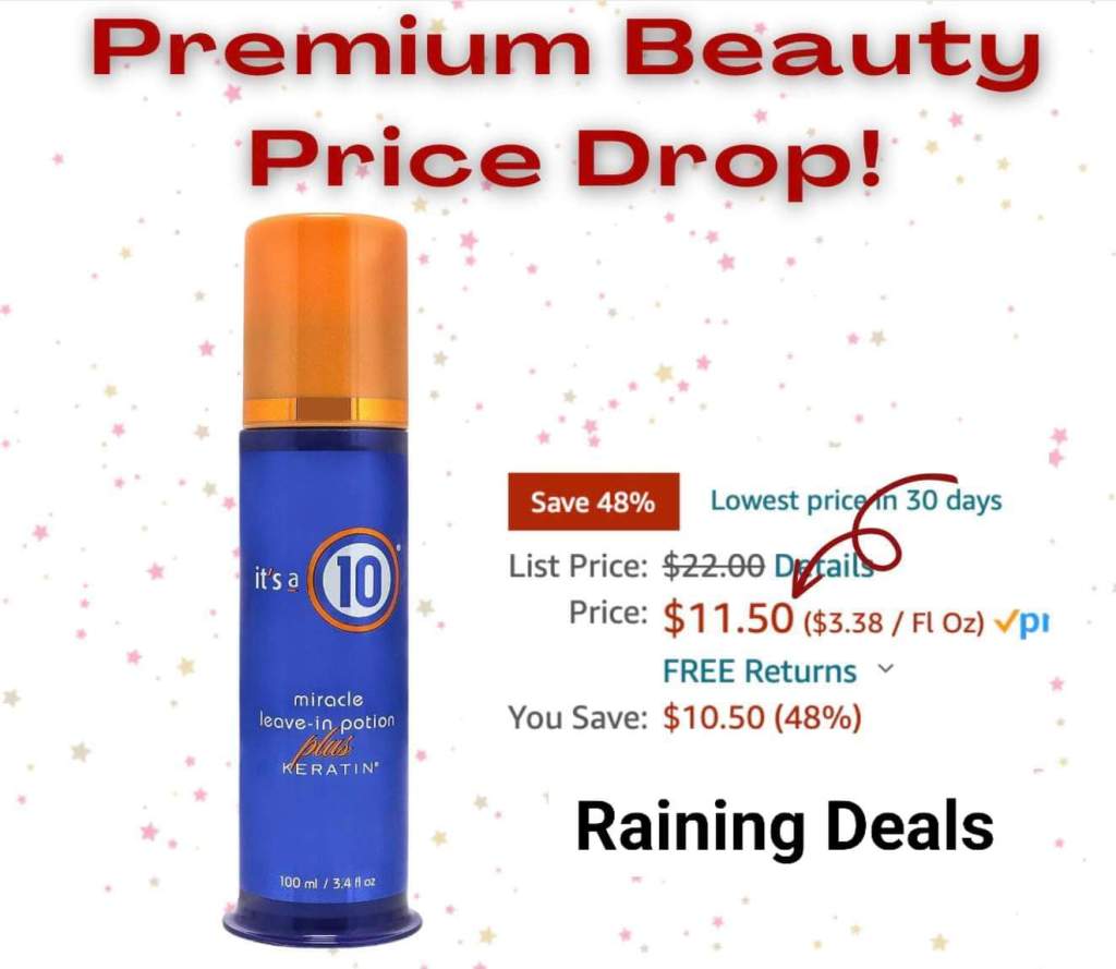 🌟 🌟 🌟 OH my word! The It’s a 10 Haircare Miracle Leave-In Potion Plus Keratin has a monster 48% savings! That’s a pre-Prime Day savings. I grabbed it.