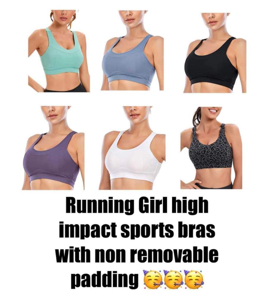 Ladies they are back !Running Girl makes a high impact sports bra with non removable padding. On lightning now !!! Size up if in between or unsure
