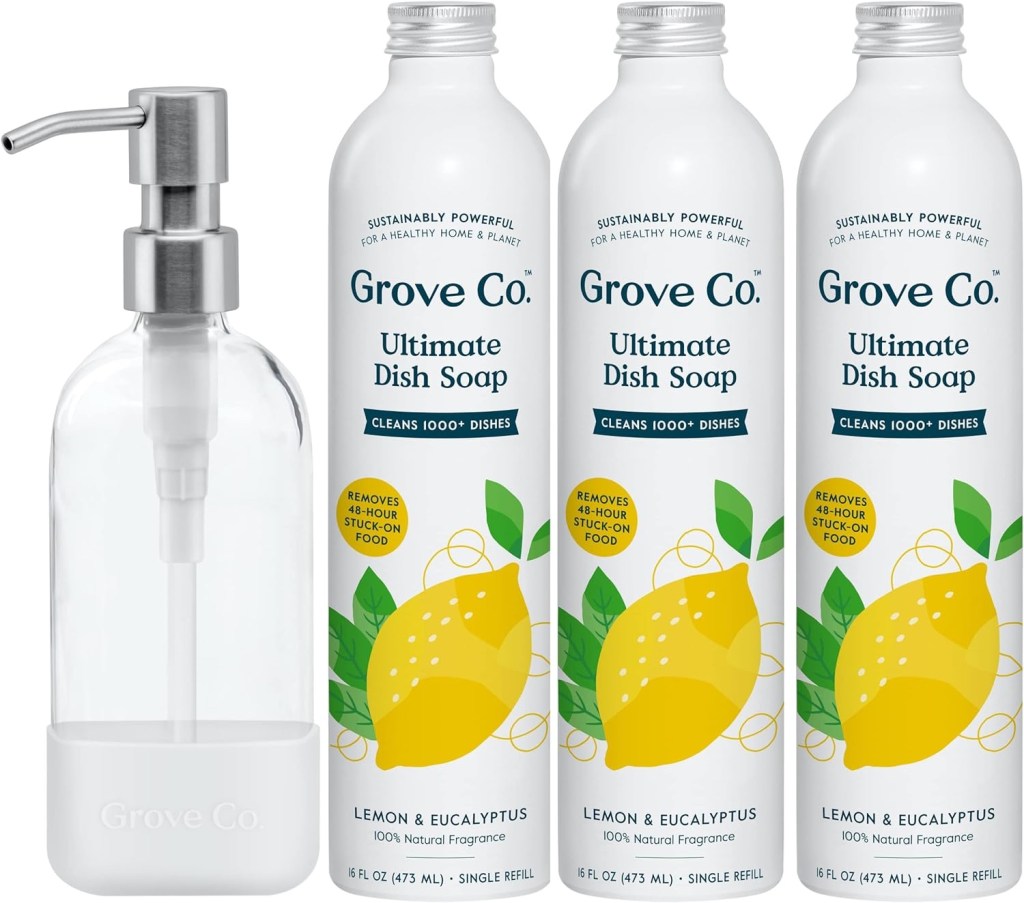 Grove Co. Ultimate Dish Soap Refills (3 x 16 Fl Oz) + Refillable Glass Dish Soap Dispenser is on ⚡️ d e a l!! #ad Tell us if you got it!