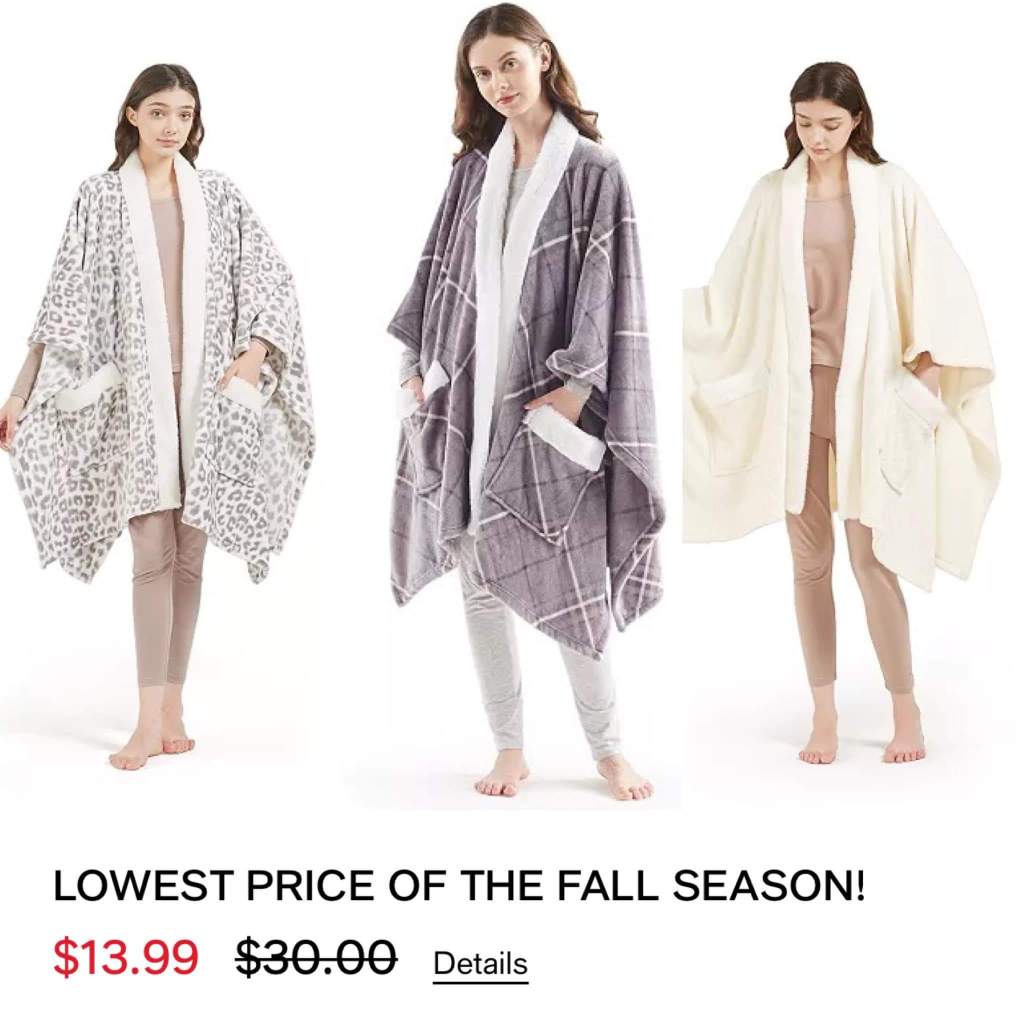 LOWEST of the season on these wearable blankets and they make awesome gifts for the person thatβs always cold! Grab 4 or get your total to 50+ for f ree shipping!