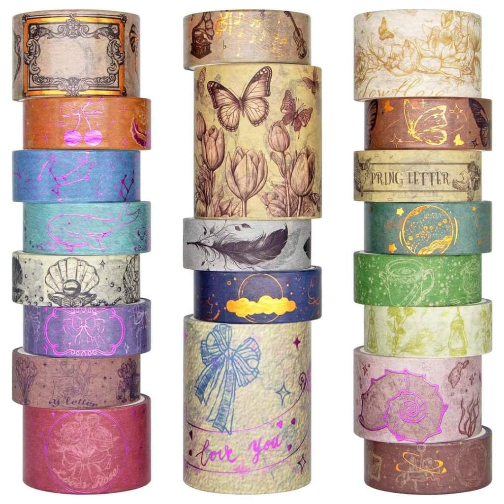 NANYNNU Washi Tape Set, 21 Rolls Gold Foil & Pink Foil Scrapbook Tape, 4 Size Glitter Washi Tapes for Scrapbooking is on deàl clip qpon at checkout #ad