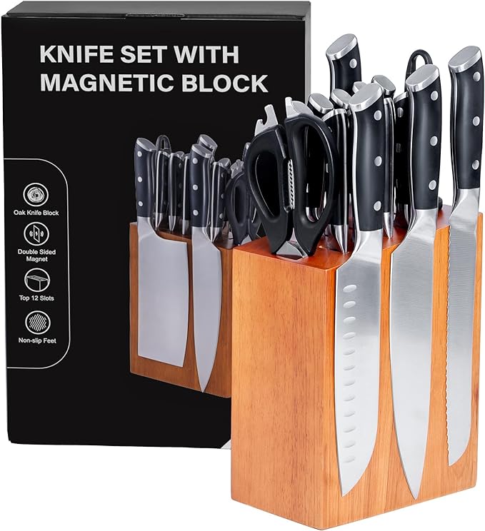 17PCS Kitchen Knife Set With Magnetic Knife Block-5 Chef Knives,8 Serrated Steak Knives Ultra Sharp Chef Knife Set with Knife Sharpener is on deàl clip qpon at checkout #ad