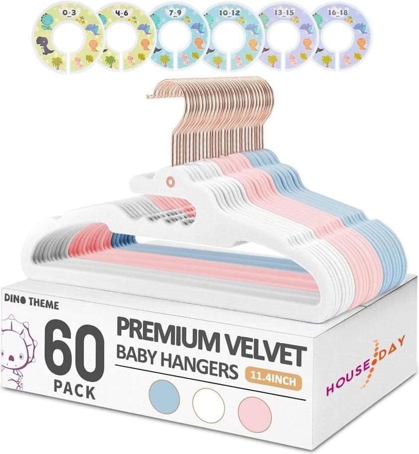 HOUSE DAY Premium Baby Hangers Velvet 60 Pack, Dino 11.4” Baby Clothes Hangers for kids with 6 Pcs Closet Dividers drōp 50% when you use LEUTMOQL at checkout #ad