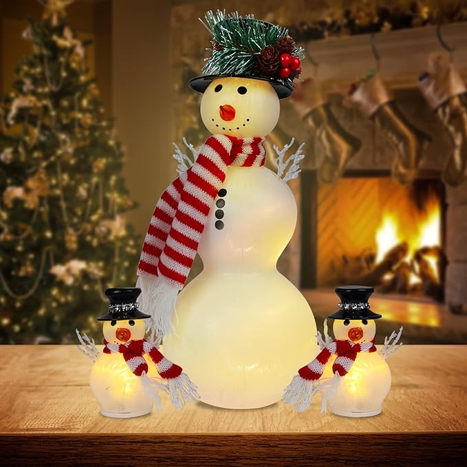 Christmas Decorations for Home, YEAHOME 3 Pcs Pre-lit Glass Snowman Decor Christmas Decorations are on drōp at checkout #ad