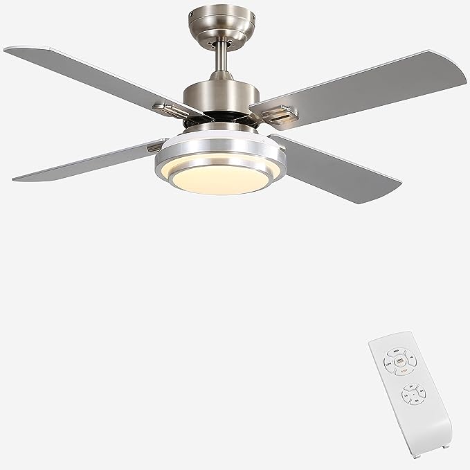 FINXIN Indoor Ceiling Fan Light Fixtures Remote LED 48 Brushed Nickel Ceiling Fans For Bedroom, is on drōp at checkout #ad