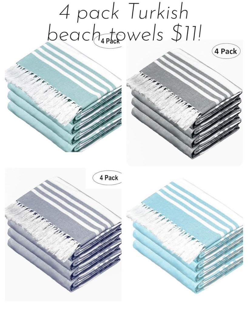 !! These 4 packs of Turkish beach towels are $11!! They are thin so they dry fast and are easy to pack. Do wash and dry them before use to soften them up! #ad