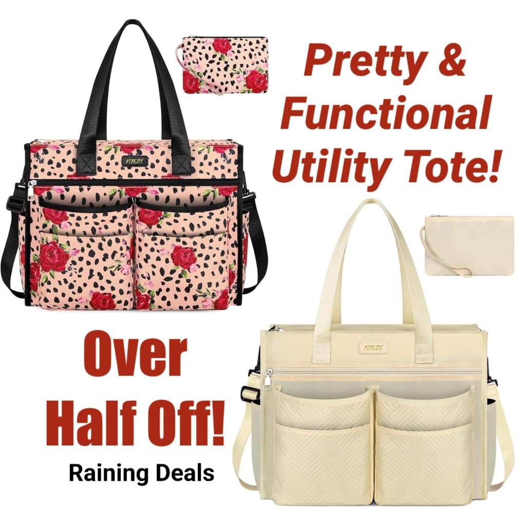 πΊπΊ These super functional utility totes drop to under 18! Tons of pockets with space for up to 16β laptops, plus trolley strap for travelers and separate cosmetics pouch. Perfect for teachers and busy moms!