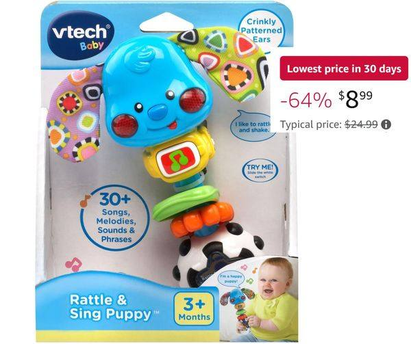 My daughter’s fave toy! Her first toy!! VTech Baby Rattle and Sing Puppy! Grab it for 8.99 (reg 24.99) #ad Tell us if you got it!!