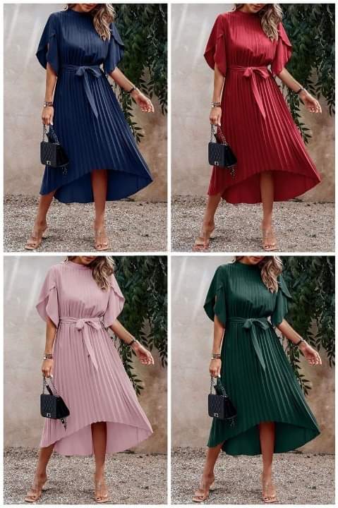 ECOWISH Women’s 2023 Summer Dresses Flutter Short Sleeve Pleated Flowy Midi Dress Wrap Tie Waist Dresses for Women