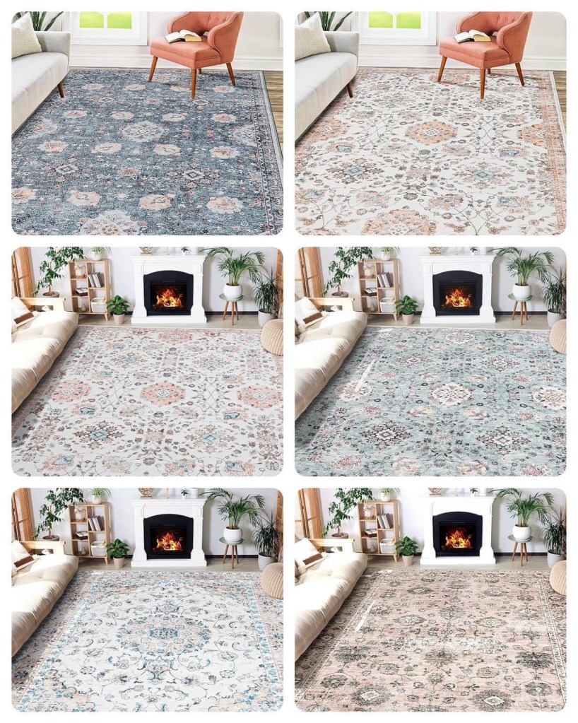 The large washable rugs in the link are 50% off at checkout. Yes of course they will be thin if they are washable, but could be good to cover up some flooring you don’t love or to add a pop of color! #ad T