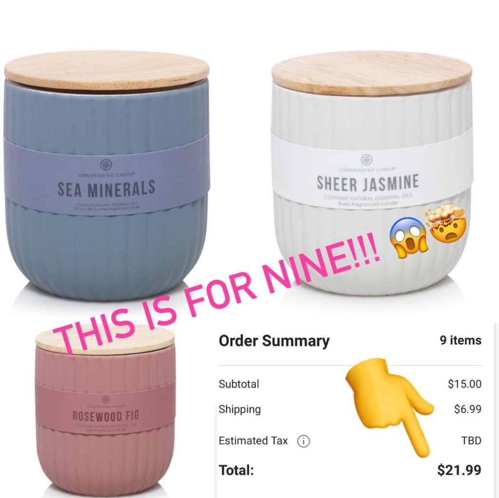 Ummmm… pretty sure this is not supposed to be happening but I just was able to grab 9 candles for 21.99 shipped!!! Just put 9 or 12 in your cart and use DM2311021 and see if it works for you!!! 🎁🎁🎁🎁 Great gifts for teachers, neighbors, friends, etc! Please say if it works for you!!!