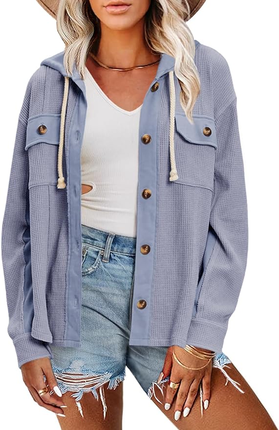 Cicy Bell Women Hooded Waffle Knit Jacket Casual Boyfriend Shirts Shacket Button Down drōps 20% 0ff when you clip qpon at checkout #ad