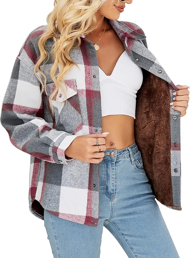 Gozoloma Sherpa Plush Fuzzy Fleece Lined Jacket Womens Plaid Flannel Shacket Jacket is on deàl clip 10% qpōn at checkout #ad