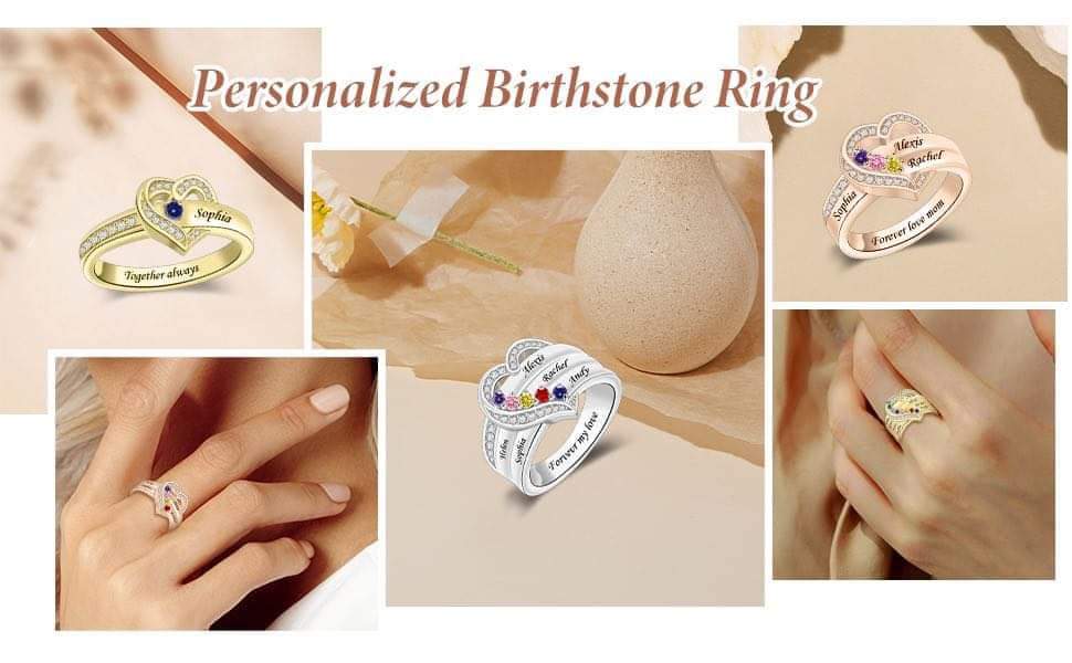 50% 0ff! BABOOM Personalized Heart Mother Ring with 1-8 Birthstones & Names on 40% Off + clip qpon at checkout #ad