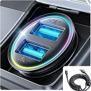 58% 0ff!!! Car Charger,JOYROOM 4.8A Car Phone Charger All Metal, Mini Cigarette Lighter USB Charger with Type C Coiled Cable for iPhone 15 Pro is on 30% 0ff at checkout don’t forget to clip 28% off qpon on products page #ad