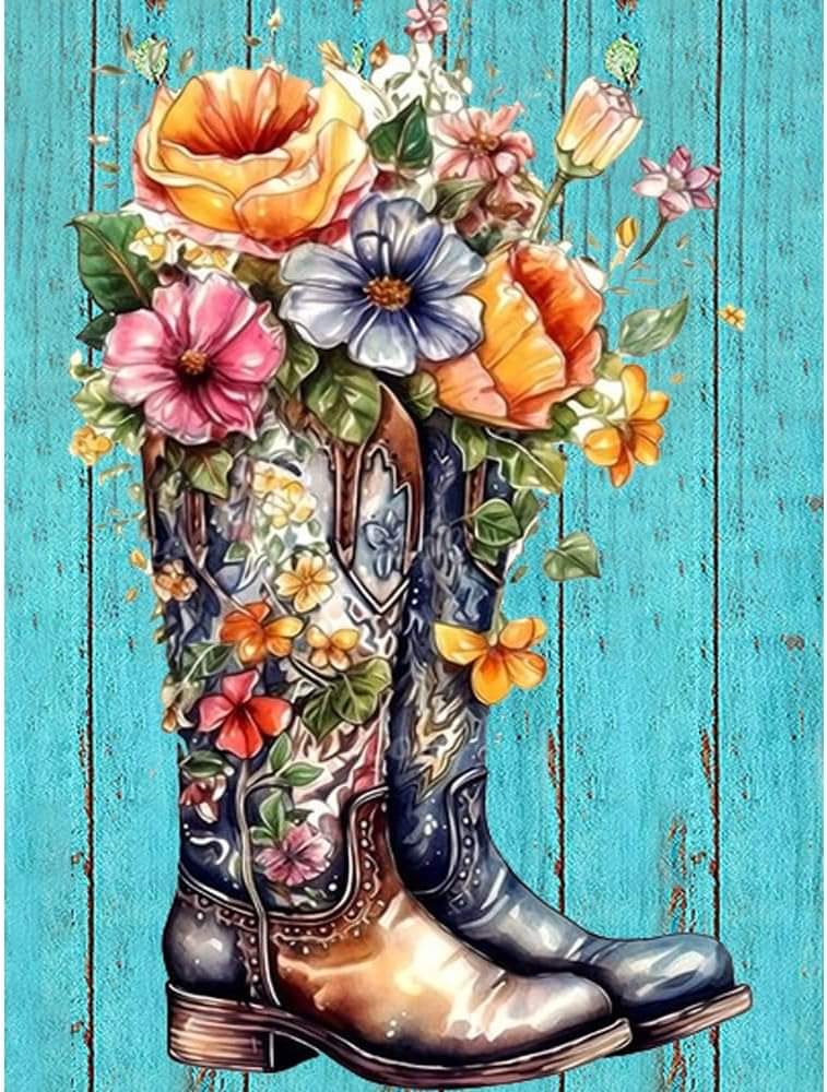 Miairivy Diamond Painting for Adults, 5D Flower Cowboy Boots Full Drill Diamond Art Kit, DIY Floral Gem Painting Set, Home Wall Decor Gifts #ad