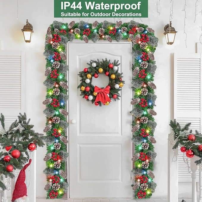 ⚡️⚡️Lightning D EAL happening! Won’t last long! Dual Color Switch & Timer & 12 Modes – 9Ft 80 LED Prelit Christmas Garland Decorations Warm White & Colorful Change Lights Remote Control 198 Red Berry Thick 300 Snowy Tips 18 Pinecone Xmas Decor!!