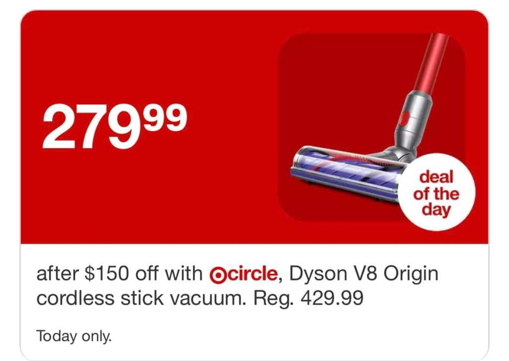The Dyson V8 Origin Stick Vacuum is dropping to 279 in cart! (Reg. 430)