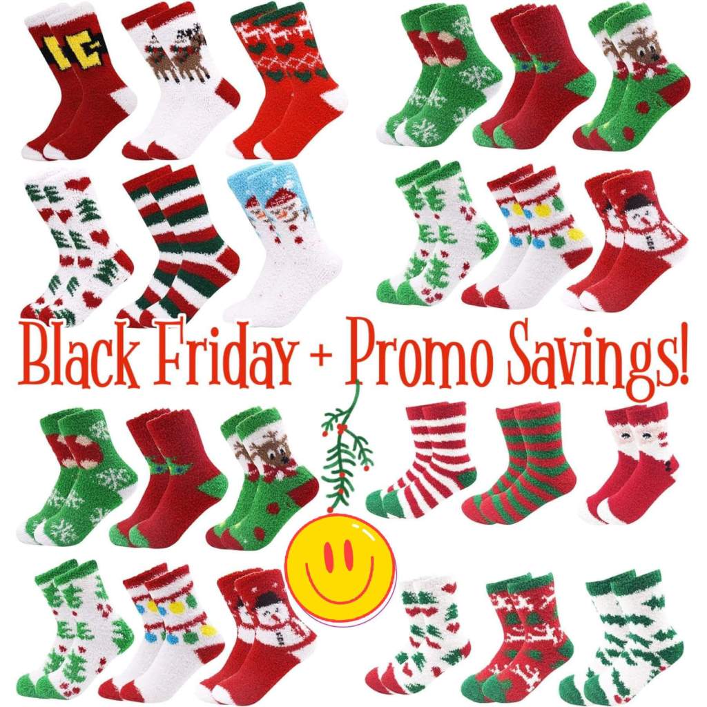 ❤️💚 The packs of SIX festive fluffy socks make perfect gifts! Choose from super cute Christmasy designs! Valid on the packs of 6 only.