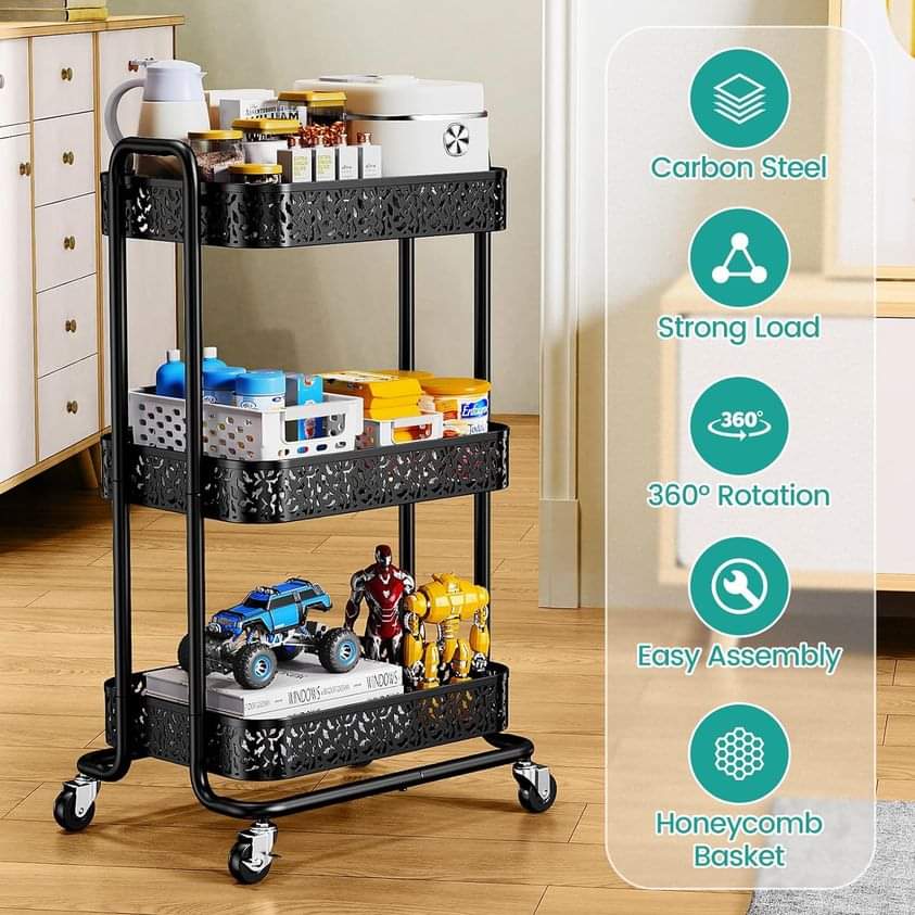 82% Off! 3 Tier Rolling Utility Cart, Heavy-Duty Metal Rolling Carts with Wheels and Vintage Floral Mesh Baskets is already on pr!ce drōp + use OK9YU6V6 at checkout #ad