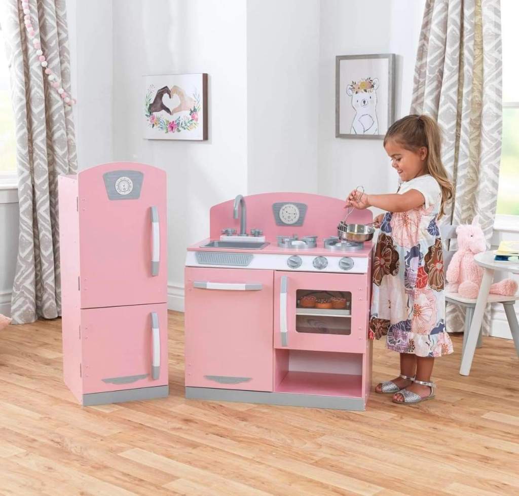 This darling KidKraft Retro Wooden Play Kitchen and Refrigerator is 65% OFF! I donβt see this lasting!