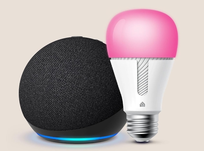 Echo Dot (5th Gen, 2022 Release) in Charcoal bundle with TP-Link Kasa Smart Color Bulb is on 68% pr!ce drōp at checkout #ad