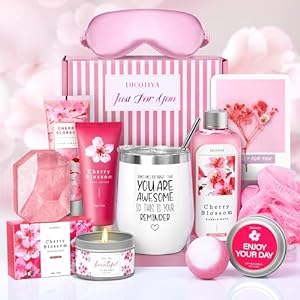 This beautiful gift sets is packed with cherry blossom scented spa treats and accessories! A perfect stocking stuffer or teacher gift!