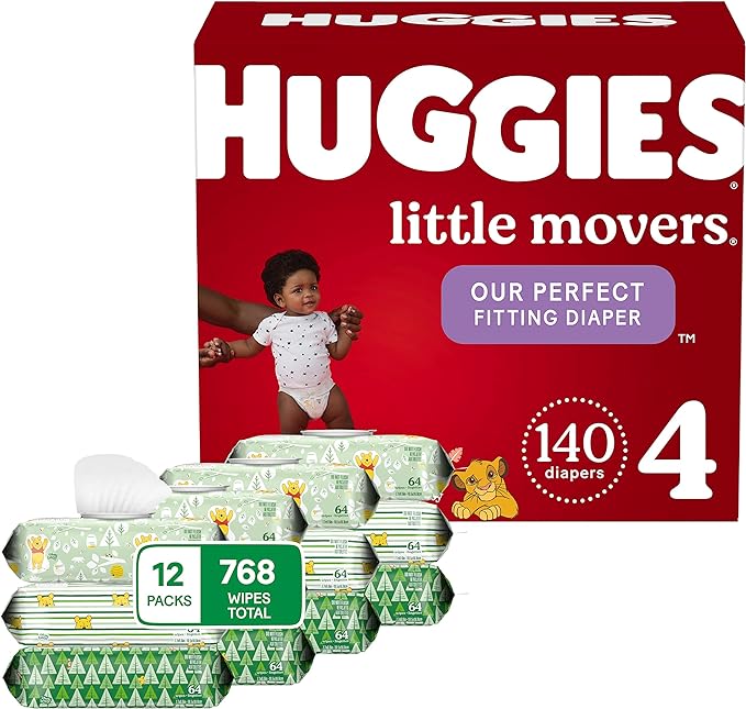 HUGGIES Baby Diapers and Wipes Bundle: Little Movers Size 4, 140ct & Natural Care Sensitive Baby Diaper Wipes #ad