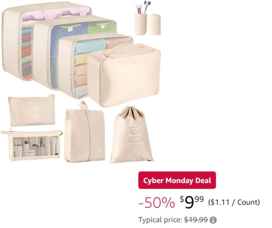 I hear packing cubes are the way to go when traveling! I have never used them, but I think I definitely should give them a try! These ones are lightweight and they come in a set of 9 for 9.99 (reg 19.99).