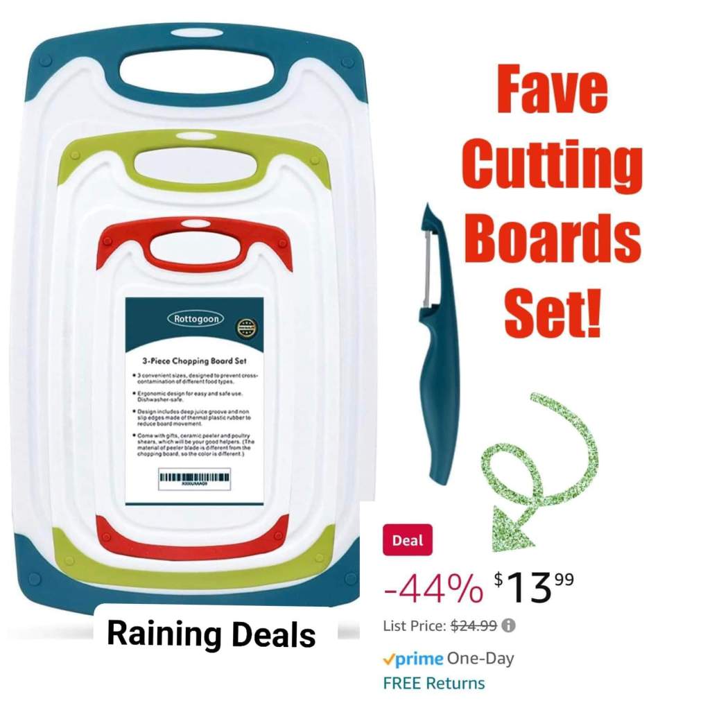 🔪🔪🔪 A phenomenal Prime savings on the pack of THREE cutting boards! Dishwasher safe in super versatile sizes with juice groove and a bonus paring knife! A great gift for the cook!