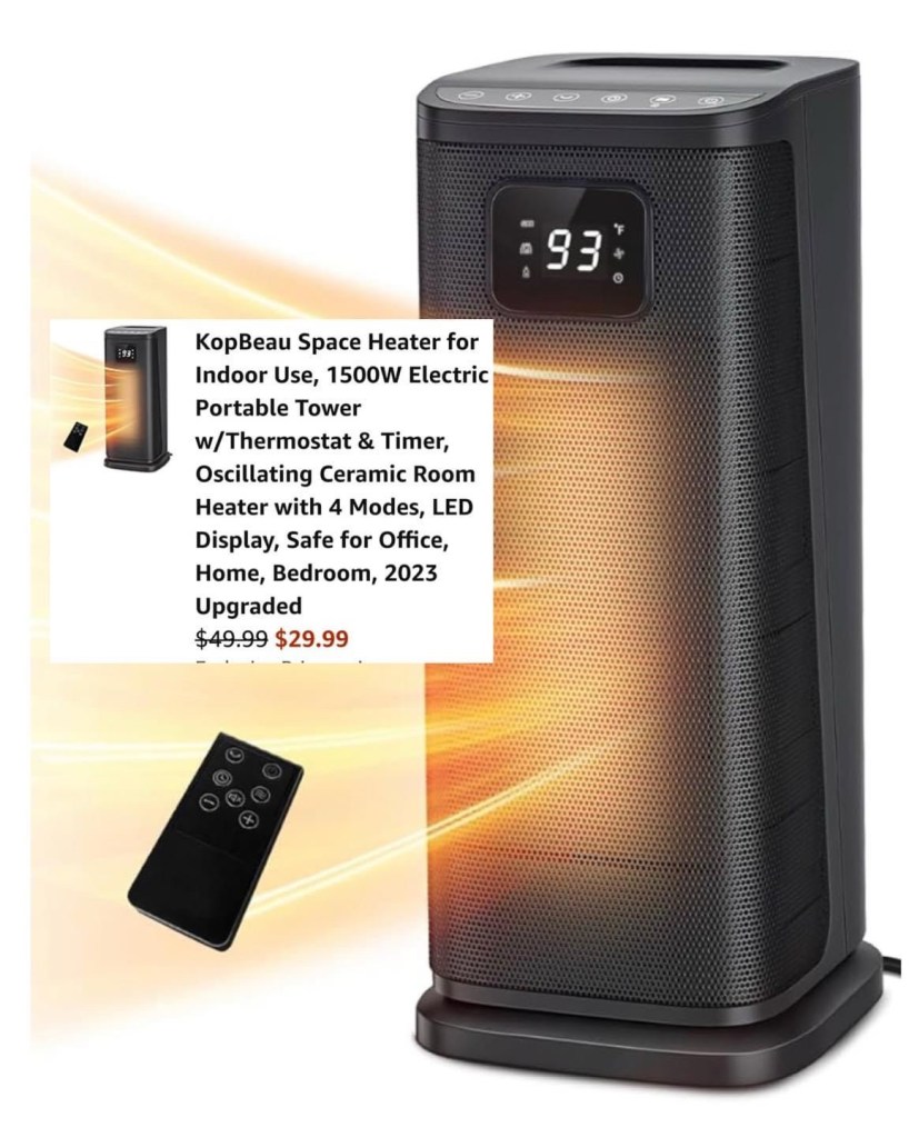 This oscillating heater with thermostat and timer is just $29.99 with code 40GJIMR4!! It has a remote, tip over protection, and a child lock function too. Prime member price only. #ad
