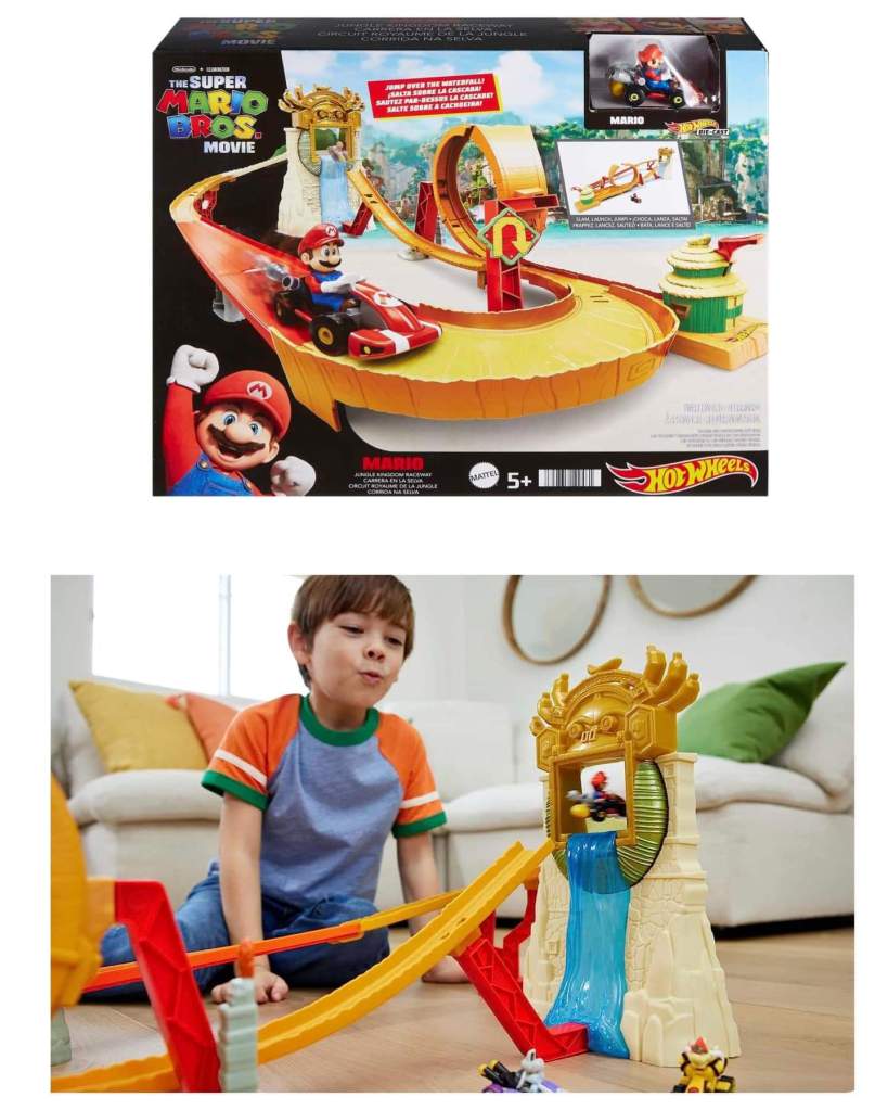 Huge dr0p!! Hot Wheels The Super Mario Bros. Movie Track Set, Jungle Kingdom Raceway Playset with Mario Die-Cast Toy Car Inspired by the Film! Great gift!!