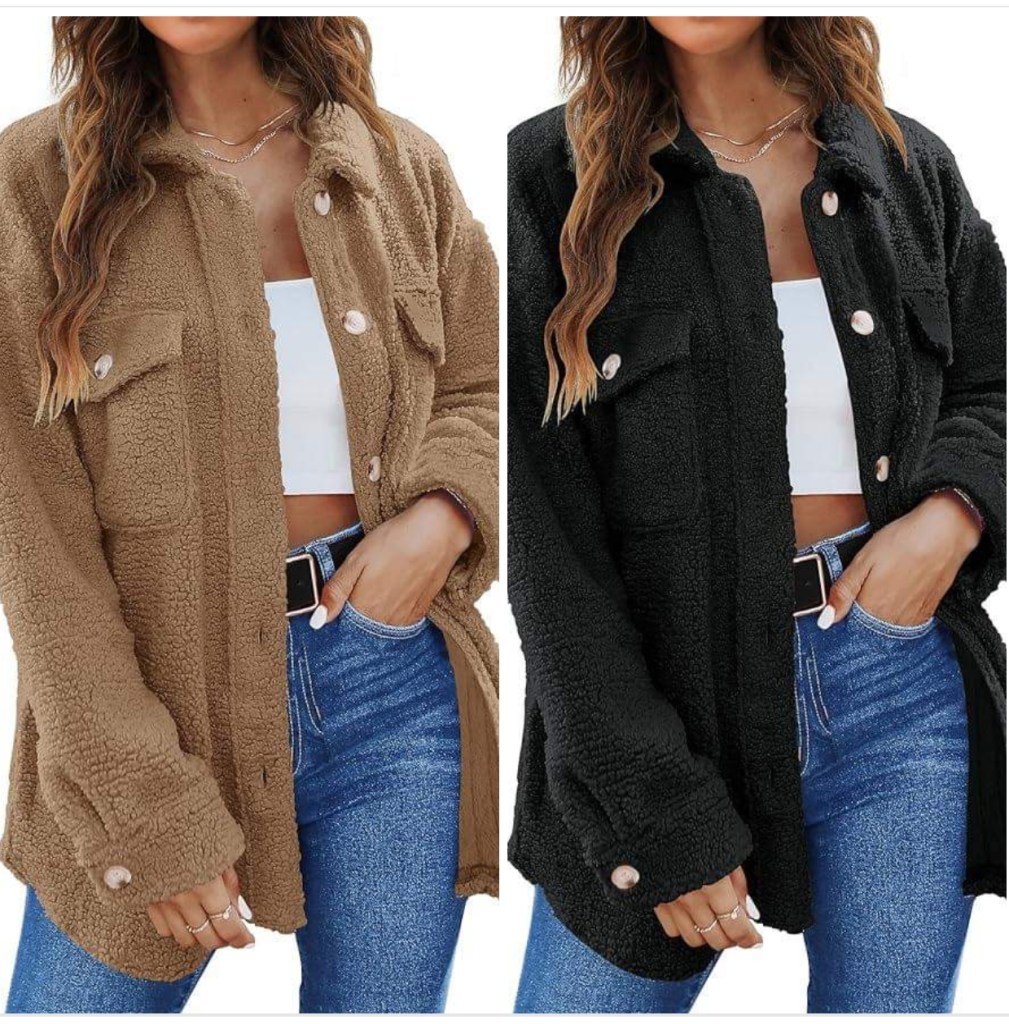 These sherpa lapel jackets are $18 and change at checkout when you choose one from the list and clip the extra coupon on the product page. Then proceed to checkout!