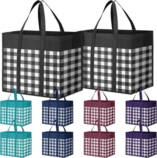 These 10 pack Reusable Grocery Bags are on sale + showing a coupon! Perfect for groceries, travel, holding winter gear to and from school, using instead of gift bags, etc. I just got them to gift throw blankets! #ad