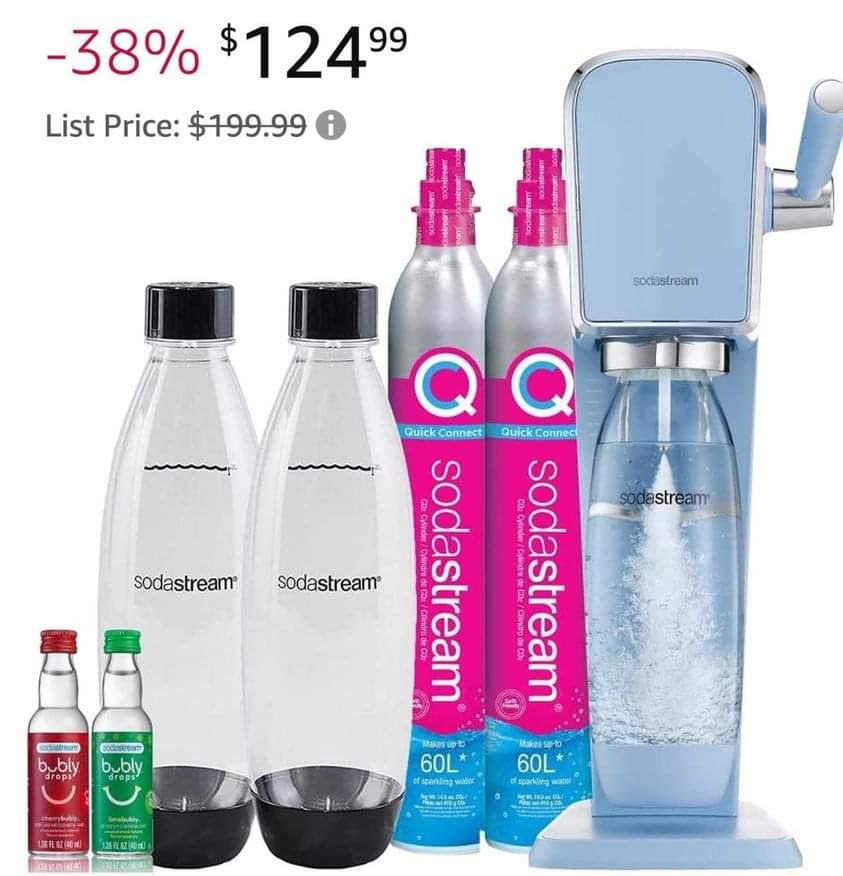 Sparkling Water Maker Smeeti BhanuDecember 4, 2023Deals Post navigation PreviousNext SodaStream Art Sparkling Water Maker Bundle (Misty Blue), is on 38% pr!ce drōp at checkout #ad SHOP DEAL Share this: Share on X (Opens in new window) X Share on Facebook (Opens in new window) Facebook Like Loading...