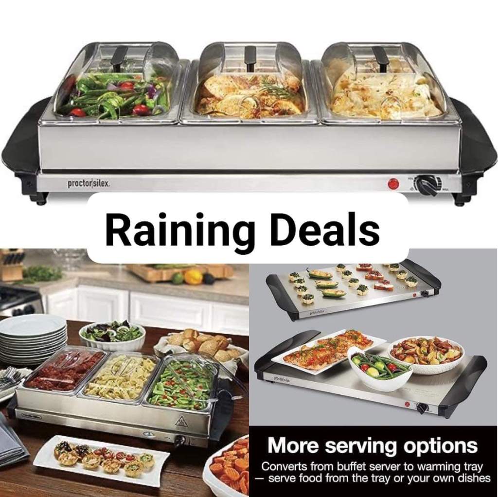 A must have for holiday entertaining! This Buffet Server & Food Warmer comes with three 2.5 Quart Oven-Safe Chafing Dish Sets with lids and can also be used as a warming tray with your own dishes. Down to 49.99 (reg 64.99)!