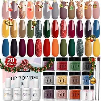 60% 0ff! On 29 Pcs Dip Powder Nail Kit Starter, AZUREBEAUTY 20 Colors Winter Glitter Red Black Nude Acrylic Dipping Powder Liquid Set with Base & Top Coat Activator at checkout #ad