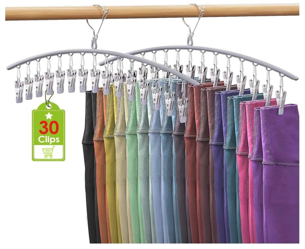 So this is GENIUS! The amount of leggings I have is out of control. These hangers each holds 15 leggings and you get 2 of them. Use 45F6WM83 to drop the price to 10.99 – grabbed them!