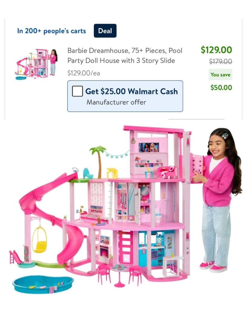 Woah!! The Barbie Dreamhouse is $129 but also has a $25 cash back offer now!!! Make sure you are logged in, add to cart and you’ll see it!! That basically makes it just $104 😱