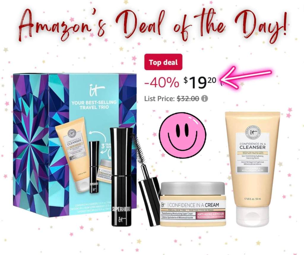 Holy moly IT Cosmetics fans! Save up to 40% on holiday gift sets. The IT Cosmetics Best-Selling Travel Size Trio Gift Set has a 40% savings.. Regularly $32 and now just $19!