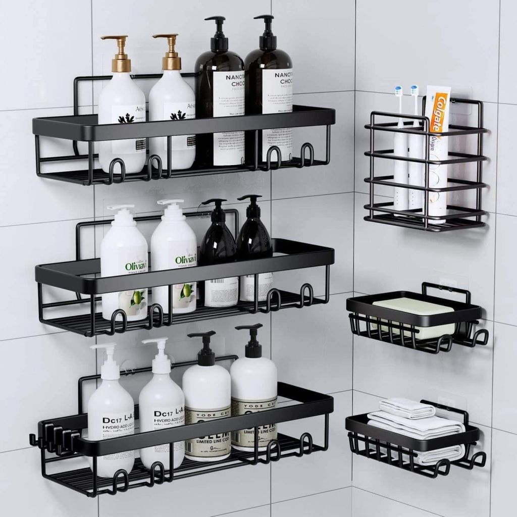 💦💦 The insanely popular shower shelves I’ve been seeing all over TikTok have a huge savings! You get a set of SIX pieces with hooks and adhesive. No drilling or screws required and NO suction cups. Perfect for apartments or homes with marble or tile.