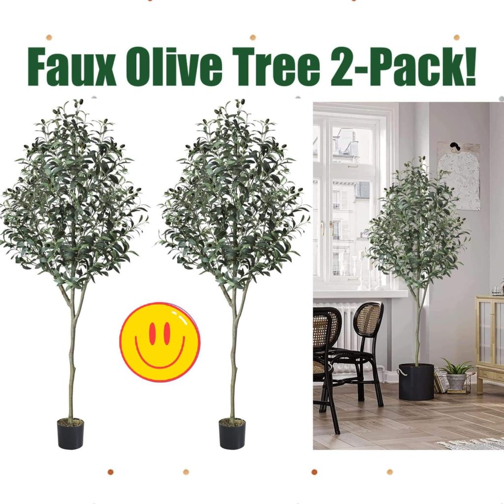 π«π«π« We have a fantastic savings on these stunning faux olive trees! What an impressive decor accent, perfect in the corner of a room or by a window. Add interest and warmth with zero effort! Choose the 5-ft or 6-ft option in a pack of TWO.